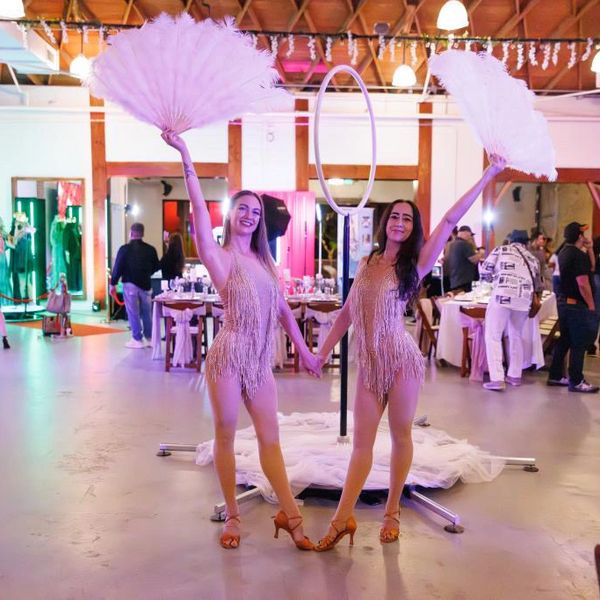 We welcome guests by pouring champagne into their glasses as they arrive — creating an eye-catching first impression and a touch of elegance. In between guest arrivals, performers add aerial tricks and graceful movement to keep the atmosphere lively and captivating.